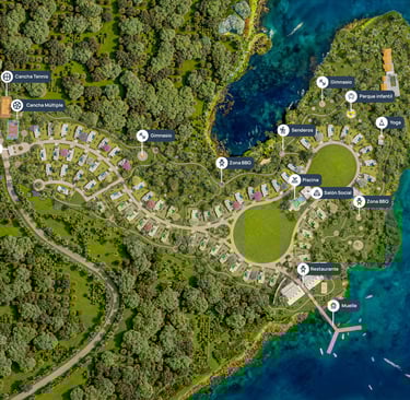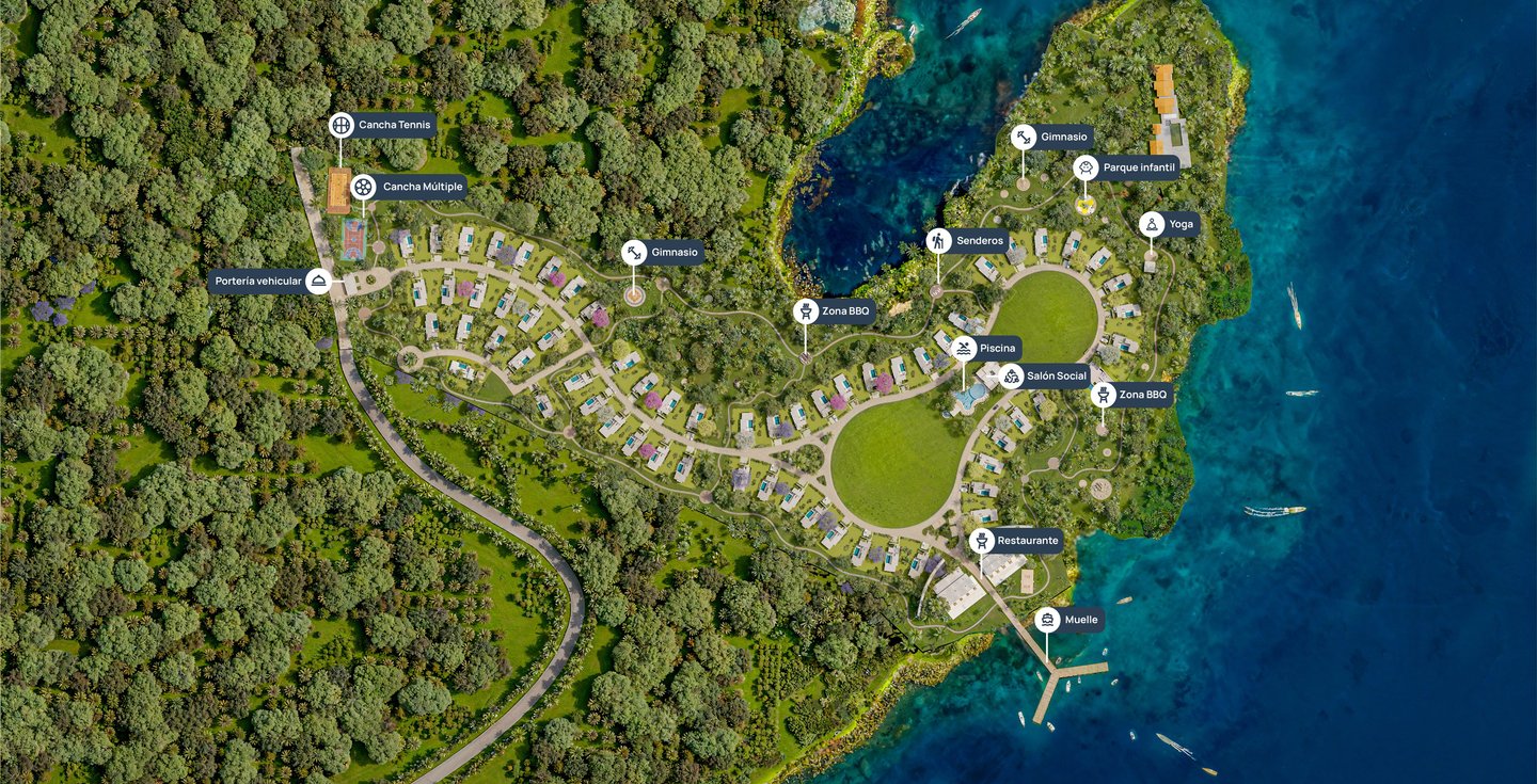 Un condominio que lo tiene todo: amenidades premium como piscina, muelle, sede social, mini golf y senderos ecológicos que elevan el valor y enriquecen tu inversión.